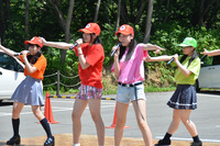 その特設ステージで最初のイベントを飾ったのは、まちあわせハチ公ガールズの皆さん。この日はメンバー9人中5人が出演し、くまくま園のオリジナルキャップをかぶり、元気あふれる歌とダンスで会場を盛り上げ、オープニングに花を添えました。