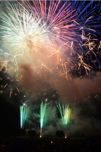 午後7時30分、開始の号砲を合図に4号から10号の割物花火、華やかなスターマインなどが次々と打ち上げられ、漆黒の夜空を華やかに彩り、最後の「躍進する北秋田、新たなる時代に夢をのせて」と題したスペシャルスターマインでは、色とりどりの連射花火が夜空を焦がし、会場からは大きな拍手と歓声が沸き起りました。
