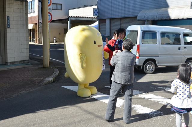 スーパー軽トラ市会場では、軽トラ販売やキッチンカー、フリーマーケット販売など多くのお店が立ち並び、大勢の人が来場しました。また、会場内では、よしもと芸人『ちぇす』によるお笑いライブや仮面ライダーフォーゼの握手会などが行われ、イベントをさらに盛り上げました。歩行者天国となった鷹巣銀座通り商店街は、北鷹高校の生徒や市民の大きな声援や笑い声が響き渡り、明るくにぎやかな1日となりました。