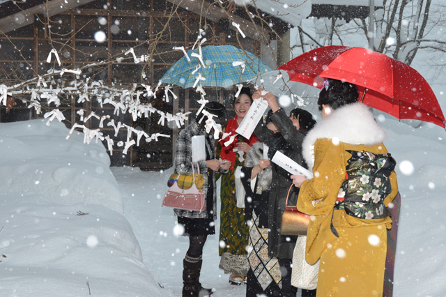 このうち、鷹巣神社で行なわれた33歳厄払い祈願式では、40人が出席し厄除けを祈願しました。同神社では黒留袖に丸髷(まげ)姿で参加する女性が多いことから、伝統的なスタイルでお参りする女性たちを写真に収めようと、市内外からアマチュアカメラマンが大勢訪れるのも毎年の風景となっています。