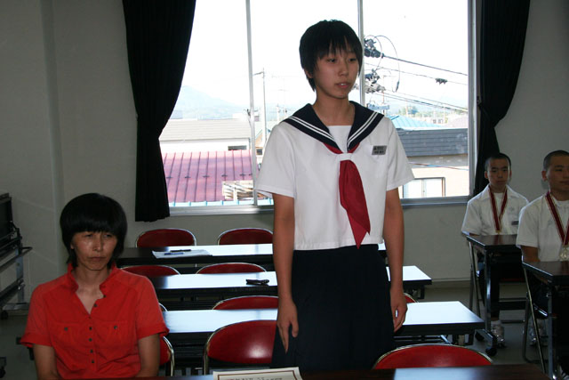 続いて三澤教育長は「君たちの活躍が、市民を勇気づけ、元気づけている。北秋田市の小・中学生は勉強だけでなく、スポーツも立派な成績で本当にうれしく思う。さらに高い目標に向かって、悔いのない試合ができるように最後の、もうひと頑張りをぜひお願いしたい」などとエールを送りました。