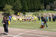 開会式では、寺田校長が「今日の運動会は、特別な運動会です。明治8年本校ができてから136年、学校の長い歴史と学校を支えてくれたこの地域、そして、皆さんを見守ってくれた校舎やグラウンド、今日は感謝の気持ちを込めて、皆さんのがんばりで示してください。また、今日はお家の方や地域の方にも、100メートル走や持久走などにも参加していただき、自分の子どもの時代をなつかしむつもりで楽しんでいただきたい。春季大運動会の名にふさわしい大会になることを祈念します」などとあいさつ。