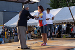 100キロの優勝者、加山さんがゴール後にインタビューに応える