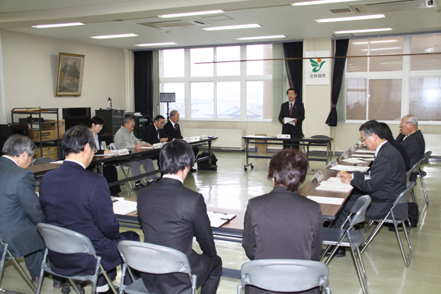 開会にあたり、津谷市長は「皆様に委員を引き受けていただき感謝します。高齢者障害者等外出支援サービスの利用登録者は22年度末現在466名で、年々減少の傾向にありますが、利用者の声を聞きながら支援サービスの見直し等を提案して、利用対象者や利用目的の拡充、適正な利用負担額等について審議いただきたい。北秋田市は秋田県で2番目の広大な面積を持っており、住民の方も広い中に点在し、限界集落も25集落あり、この事業が大きな役割を担っていることはご理解していただけると思います。当市は、気持ちの上で日本一安全で安心な市を目指すということでがんばっていますので、皆様のお力をお貸しいただきたい」などとあいさつ。