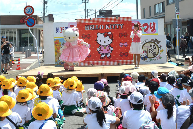 今年は北秋田市ふるさと大使であるハローキティのミニショーが行われ、会場に訪れた子どもたちは一緒に踊ったり、写真を撮ったりして盛り上がっていました。