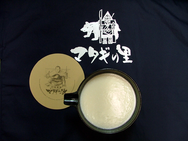 森吉山系の清冽な湧水と、秋田こまちで仕込んだ手作りの濁酒は「マタギの夢」と名付けられ、アルコール度は13 %未満で、米の旨みを生かしたまろやかな味わいで、もろみも邪魔にならず、のど越しもよく仕上がったとのこと。