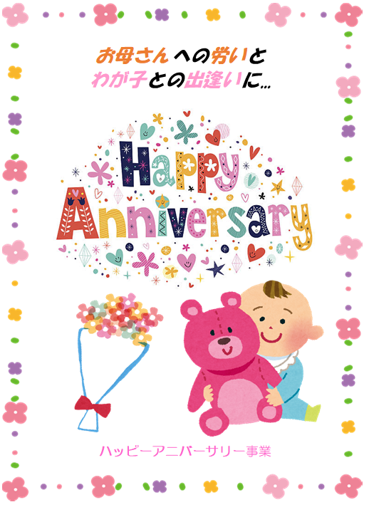 ハッピーアニバーサリー事業では、お子さんが誕生する世帯に対しお祝いとお母さんへの労い、そして子育てへの激励の思いを込めて記念品を贈呈します。