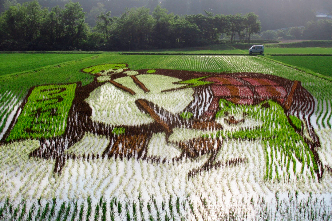 5月下旬から6月上旬にかけて、沿線住民の皆さまにご協力いただいて田植えを行いました5か所の「田んぼアート」が、いよいよ見頃を迎えています。